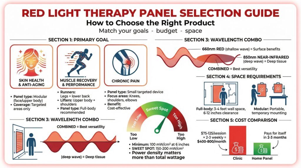 Most quality panels mix 660nm (red) and 850nm (near-infrared). This combo gives you surface and deep tissue benefits in one device.