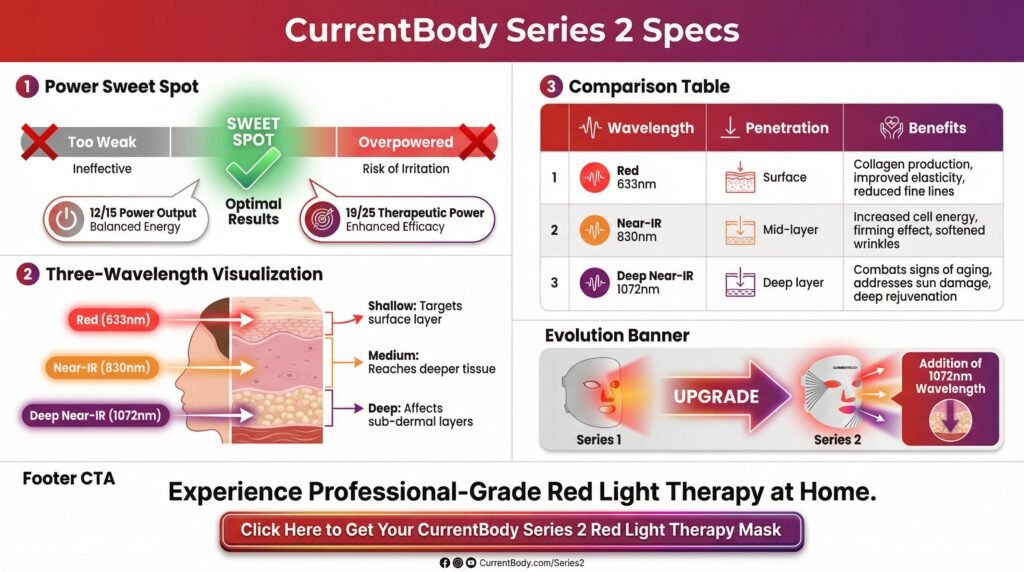- Deep near-infrared (1072nm) → boosts collagen at even greater depths (a key Series 2 upgrade)