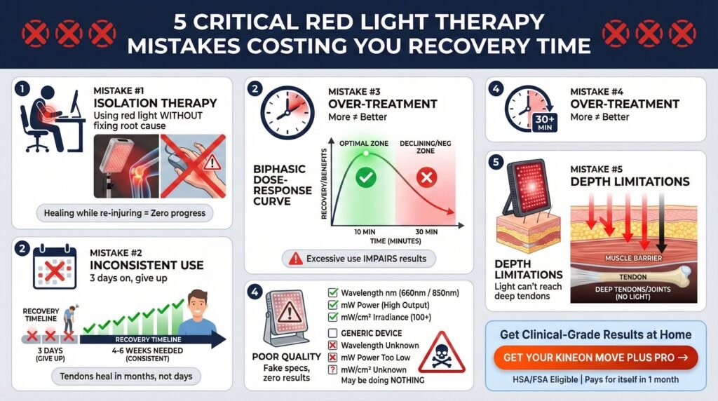 I’ve seen people make several recurring errors when trying red light therapy for tendonitis. The first is using it in isolation without addressing the underlying biomechanical issues or activity modifications that caused the tendonitis in the first place.