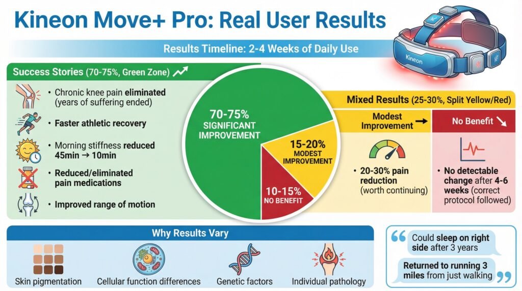 Real-world results show clear patterns: roughly 70-75% of users experience meaningful improvement within 2-4 weeks of consistent use, while 25-30% see minimal benefit despite proper usage. This variability means the device works well for most people but isn’t universally effective.
