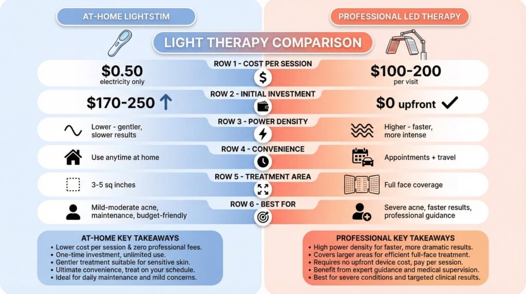 | Factor | LightStim At-Home | Professional LED Therapy |