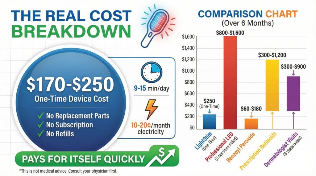 The LightStim pays for itself pretty quickly if you are already spending money on acne treatments or considering professional light therapy.