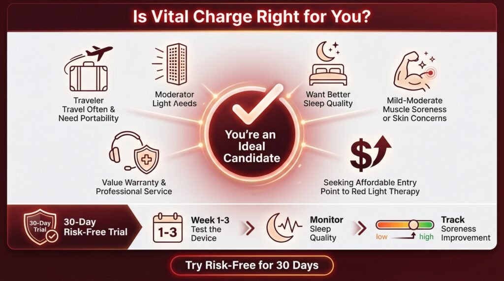 If you’re checking out red light therapy for the first time and want something affordable and portable, the Vital Charge makes sense. If you’re already convinced about red light therapy and want to stop paying for clinic sessions, it makes even more sense.