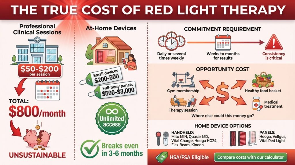 Discover how much you’ll save by owning your own red light therapy device compared to professional clinical sessions